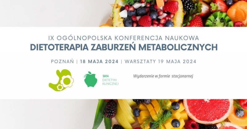 Z ogromną radością zawiadamiamy o odbyciu się IX edycji Ogólnopolskiej Konferencji Naukowej Dietoterapia Zaburzeń Metabolicznych organizowanej przez SKN Dietetyki Klinicznej działającego przy Katedrze i Zakładzie Leczenia Otyłości, Zaburzeń Metabolicznych oraz Klinicznej.
