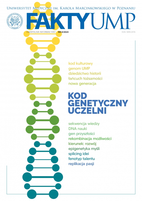 zapraszamy do lektury najnowszych „Faktów UMP”. Każdy z nas nosi w sobie genom UMP. Replikujemy pasje, nasze talenty przejawiają się w fenotypie. Chcemy też budować prawdziwy łańcuch tożsamości. I także o tym piszemy na łamach naszego czasopisma. Na dobry początek roku kilka słów kieruje do nas Rektor prof. Zbigniew Krasiński. O genomie w ujęciu kulturowym opowiada prof. Jan Domaradzki. Prezentujemy wyjątkową jednostkę - Katedrę i Klinikę Dermatologii - a jej kierownik, prof. Aleksandra Dańczak-Pazdrowska, daje też cenne rady, jak zachować zdrowie i piękno. W naszym czasopiśmie jak zawsze zamieszczamy bogate relacje z życia naszych szpitali klinicznych oraz stałe rubryki „Strefa po dyplomie” i „Strefa PUMS”. Za oknem jeszcze zima. I mimo że nie tak mroźna, to warto rozmarzyć się o wiośnie i pięknych kwiatach. O niezwykłej pasji do roślin opowiada dr Małgorzata Łagiedo.