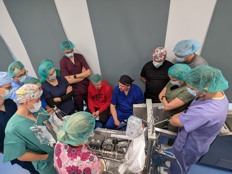 Dzięki przychylności JM Rektora, w dniach 21-22 października 2023 r. w Centrum Symulacji Medycznej odbyło się pierwsze w Polsce szkolenie praktyczne dla Perfuzjonistów z zakresu krążenia pozaustrojowego z wykorzystaniem symulacji medycznej wysokiej wierności. Kurs ten był poprzedzony dwoma szkoleniami z zakresu ECMO - certyfikowanymi przez ELSO (Światową Organizację Technik Pozaustrojowych), a głównym celem wspólnego działania było stworzenie standaryzowanego programu szkoleniowego umiejętności praktycznych dla perfuzjonistów w zakresie perfuzji pozaustrojowej i ECMO w Polsce.