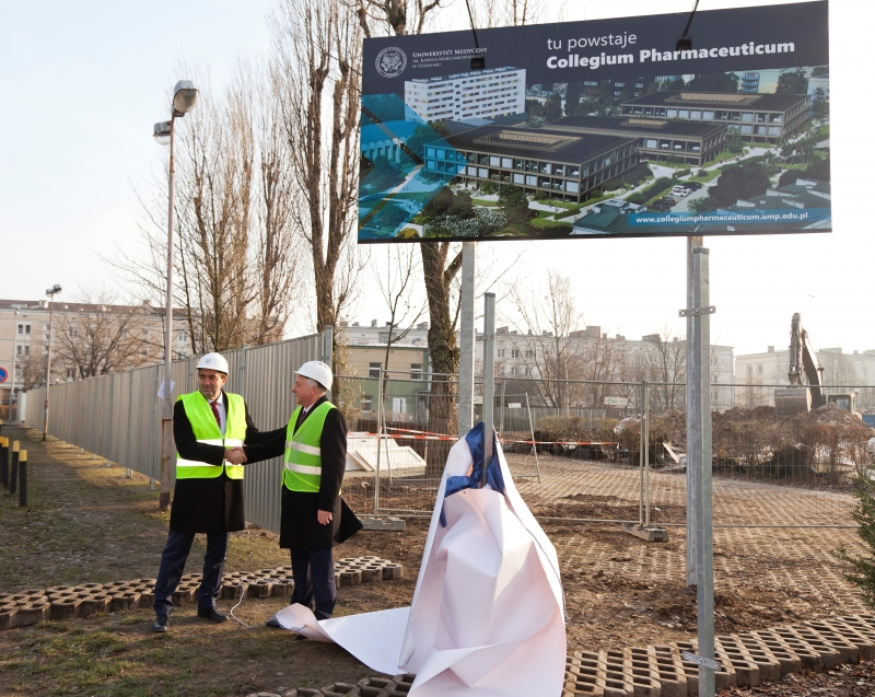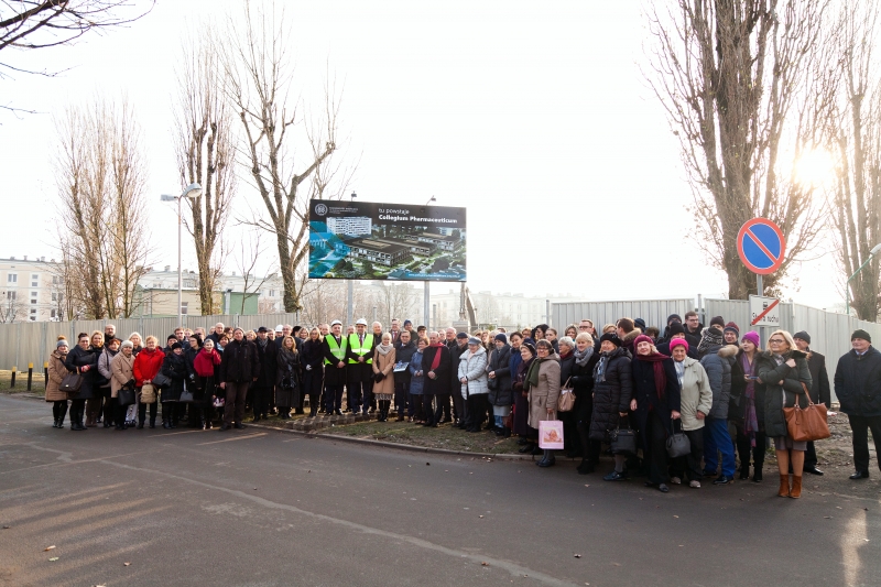 Uroczystego odsłonięcia tablicy w miejscu budowy Collegium Pharmaceuticum dokonali JM Rektor prof. dr hab. Andrzej Tykarski i Dziekan Wydziału Farmaceutycznego prof. dr hab. Lucjusz Zaprutko. Ta symboliczna chwila wpisała się w świąteczne spotkanie pracowników i przyjaciół Wydziału Farmaceutycznego, dla których ponad 50-letnie marzenie o Collegium staje się faktem.