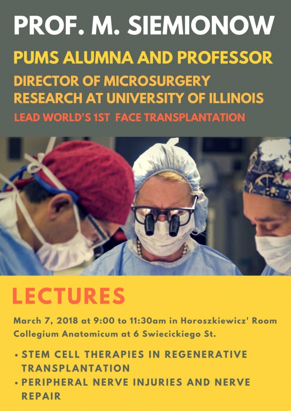 Serdecznie zapraszamy polsko i anglojęzycznych studentów naszej uczelni na dwa wykłady, które wygłosi prof. Maria Siemionow z Uniwersytetu Illinois w Chicago: