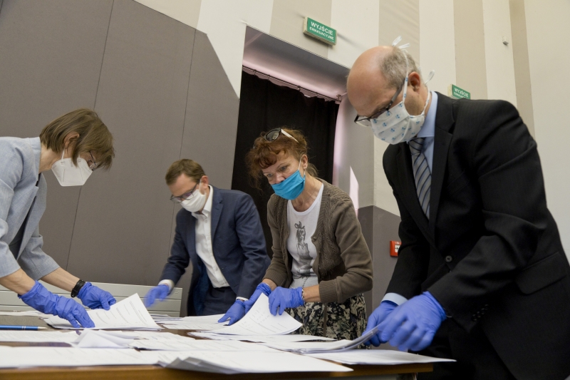 Cztery osoby z komisji skrutacyjnej liczą głosy