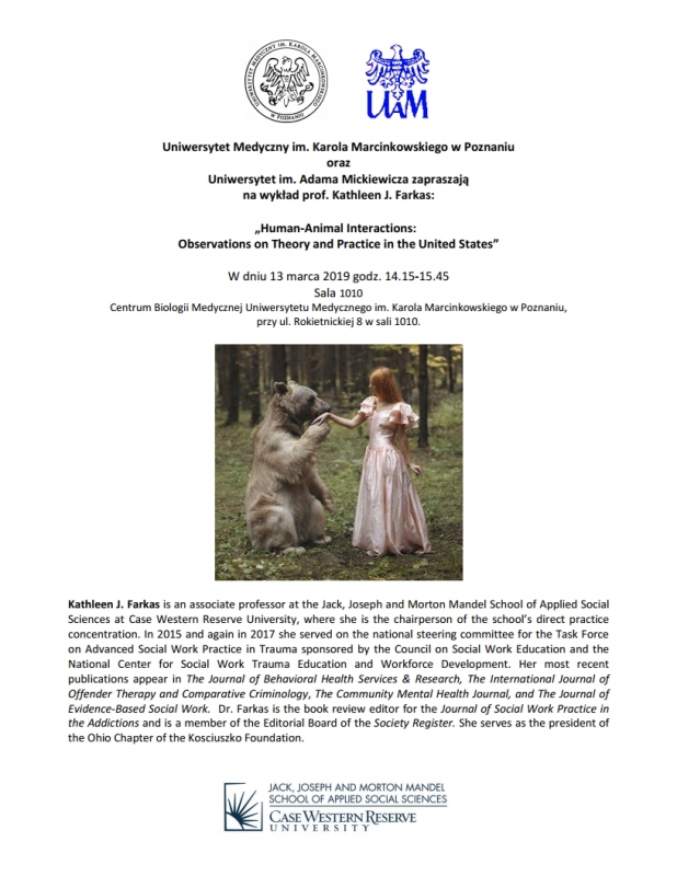 Uniwersytet Medyczny im. Karola Marcinkowskiego w Poznaniu oraz Uniwersytet im. Adama Mickiewicza zapraszają na wykład prof. Kathleen J. Farkas:
