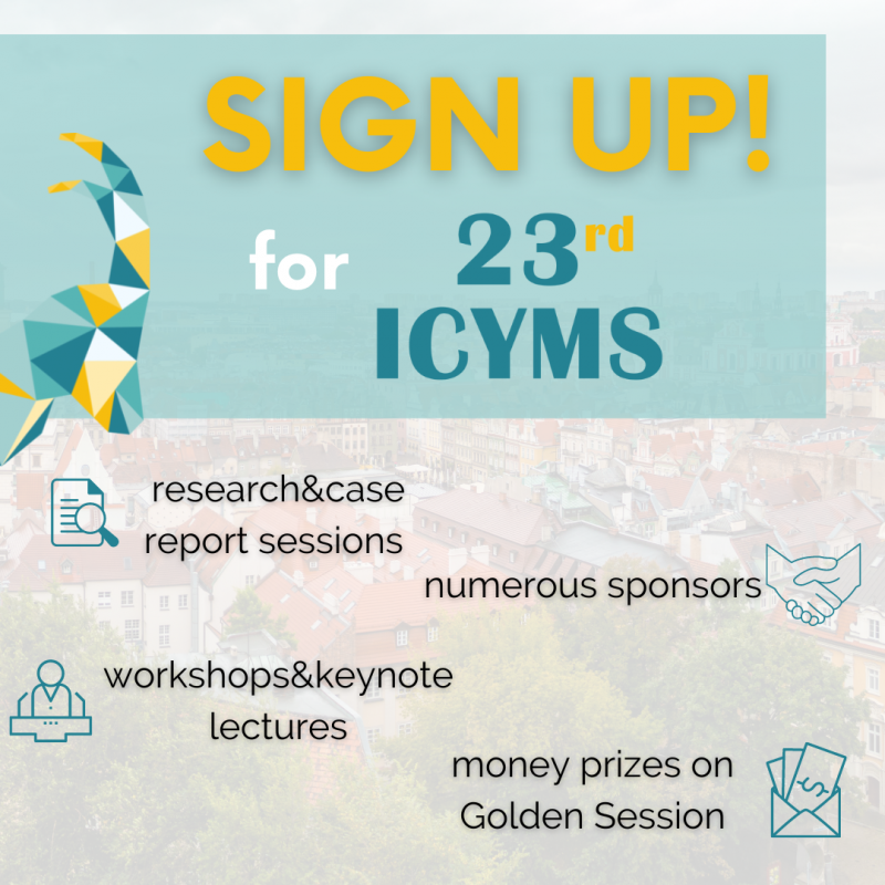 Kongres odbędzie się pomiędzy 25 a 27 maja 2023 r. w Centrum Kongresowo-Dydaktycznym Uniwersytetu Medycznego w Poznaniu. Od 13.02 do 19.03 trwa nabór abstraktów. Zapraszamy na oficjalną stronę ICYMS, by zapoznać się ze szczegółami.