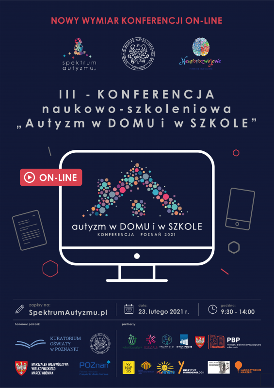 Data wydarzenia: 23 lutego 2021Neurorozwojowe Studenckie Koło Naukowe zaprasza na III edycję Konferencji naukowo-szkoleniowej „Autyzm w DOMU i w SZKOLE”.