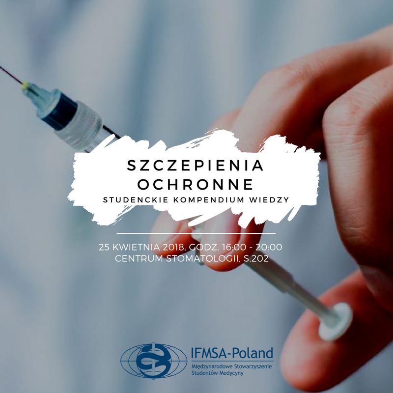 Data wydarzenia: 25 kwietnia 2018Serdecznie zapraszamy studentów wszystkich kierunków medycznych na konferencję naukową „Szczepienia ochronne. Studenckie kompendium wiedzy” organizowaną przez Międzynarodowe Stowarzyszenie Studentów Medycyny IFMSA-Poland.