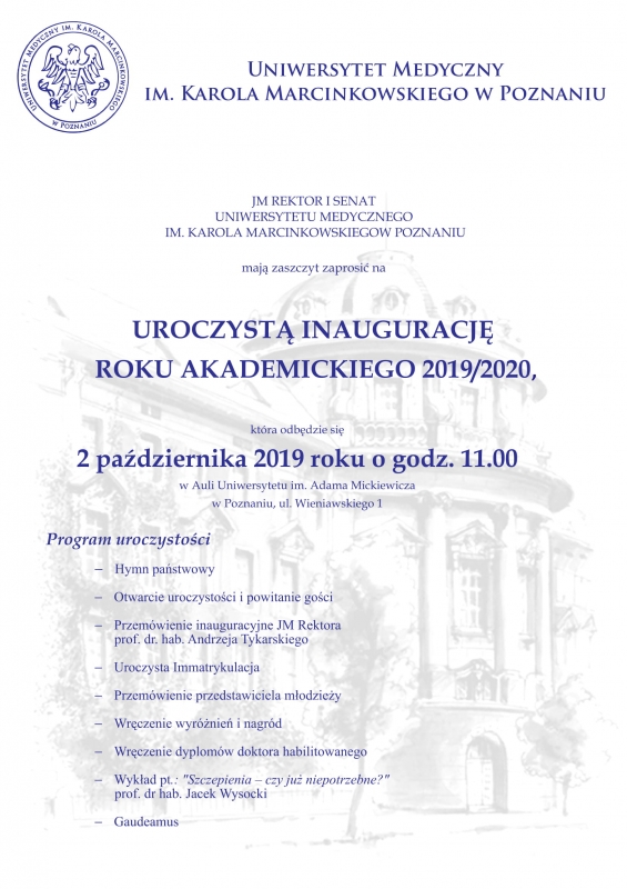 Zaproszenie na Uroczystą Inaugurację Roku Akademickiego 2019/2020