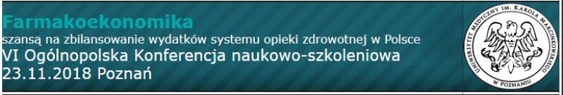 zapraszamy do udziału w VI Ogólnopolskiej Konferencji "Farmakoekonomika szansą na zbilansowanie wydatków systemu opieki zdrowotnej w Polsce" - 23.11.2018, która odbędzie się w budynku Centrum Biologii Medycznej sala 1010 (ul. Rokietnicka 8, Poznań) Uniwersytetu Medycznego im. Karola Marcinkowskiego w Poznaniu.
