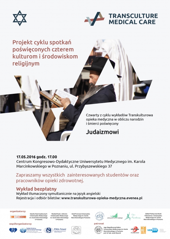 Data wydarzenia: 17 maja 2016Studenckie Koło Naukowe Etyki i Bioetyki działające przy Katedrze Nauk Społecznych Uniwersytetu Medycznego w Poznaniu serdecznie zaprasza na ostatni wykład z cyklu „Transkulturowa opieka medyczna w obliczu narodzin i śmierci”. Spotkanie odbędzie się 17. maja 2016 roku o godz. 17.00 w Centrum Kongresowo-Dydaktycznym Uniwersytetu Medycznego i dotyczyć będzie opieki nad pacjentem wyznania mojżeszowego. Naszym gościem będzie Naczelny Rabin Polski Michael Schudrich, który opowie o tradycjach w kulturze żydowskiej, procedurach medycznych, które są niedozwolone i obrzędzie obrzezania, który budzi wiele kontrowersji.