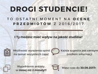 08/09/2017Drodzy Studenci, zachęcamy Was do wypełniania anonimowych ankiet oceniających zajęcia na Waszych kierunkach studiów. Każda opinia...