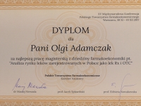 Pierwsza nagroda za najlpeszą pracę magisterską z zakresu farmakoekonomiiki