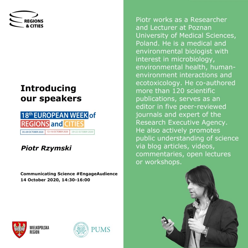 Z satysfakcją informujemy, że w trakcie trwającego Europejskiego Tygodnia Regionów i Miast #EURegionsWeek w dniu 14 października odbyło się wydarzenie "Communicating Science #EngageAudience" (Komunikacja naukowa #ZaangażowaćOdbiorców), współorganizowane przez Biuro Wielkopolski w Brukseli.