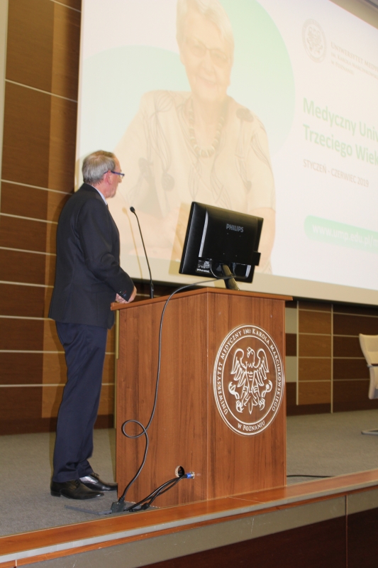 Niezmiernie licznie przybyłych zainteresowanych przywitał prof. dr hab. Michał Musielak, Prorektor ds. Organizacji, Promocji i Współpracy z Regionem, oddając głos Pani prof. dr hab. Katarzynie Wieczorowskiej-Tobis, Pełnomocnik Rektora ds. Uniwersytetu Trzeciego Wieku. Wygłoszony wykład na temat spowalniania procesu starzenia wprowadził zebranych w idee comiesięcznych spotkań, które zaplanowane zostały do czerwca br.