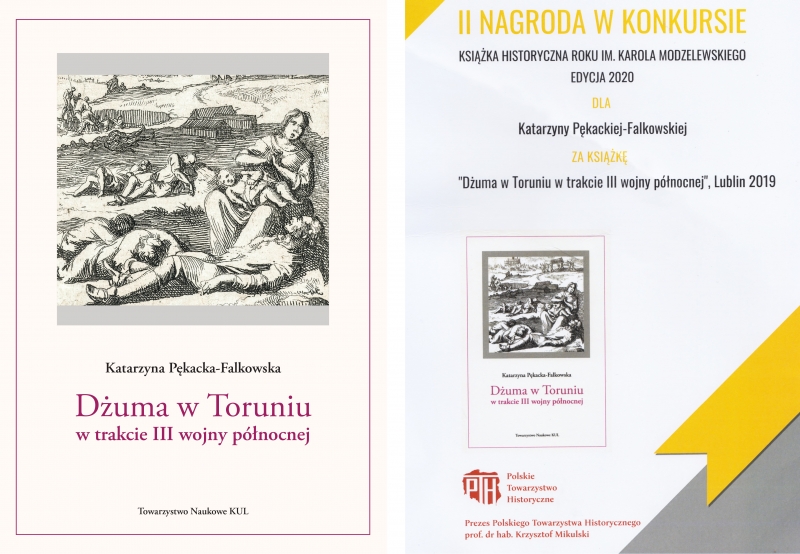 Z satysfakcją informujemy, że dr n. hum. Katarzyna Pękacka-Falkowska, adiunkt w Katedrze i Zakładzie Historii i Filozofii Nauk Medycznych, autorka monografii „Dżuma w Toruniu w trakcie III wojny północnej”, otrzymała II nagrodę w konkursie Polskiego Towarzystwa Historycznego na książkę historyczną roku 2020.