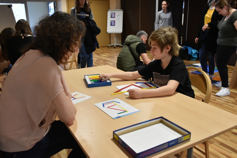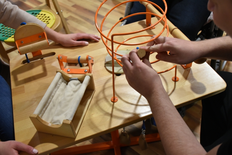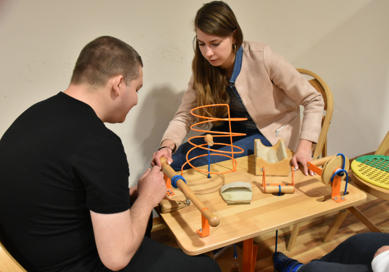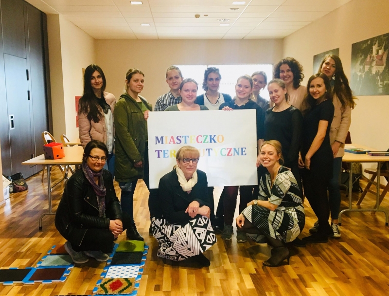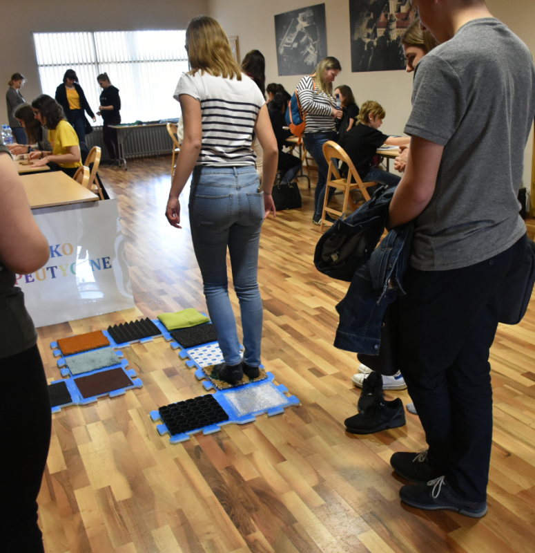 Odwiedzająca miasteczko młodzież szkół gimnazjalnych i licealnych mogła poznać oraz „poczuć” terapię zajęciową. Uczestnicy ćwiczyli przy stoliku usprawniającym rękę, doznawali stymulacji sensorycznej, ćwiczyli percepcję wzrokową, słuchową, dotykową, pamięć, a także rozwiązywali zadania poznawcze. Ogromne zainteresowanie wzbudziła możliwość zaprojektowania i wykonania zabawki terapeutycznej z dobrze znanych materiałów i przedmiotów codziennego użytku. Pozytywny klimat prób działań terapeutycznych pokazał, że terapia zajęciowa nie musi być trudnością lecz radosnym pokonywaniem zadań, które stymulują rozwojowo.