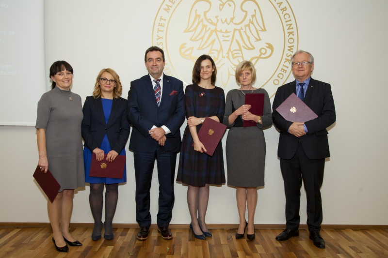 Wręczenie odznaczeń państwowych rozpoczęło posiedzenie Senatu Uniwersytetu Medycznego im. Karola Marcinkowskiego w Poznaniu w dniu 29 listopada 2017 r. Z rąk JM Rektora prof. dra hab. Andrzeja Tykarskiego Nagrody Ministra Zdrowia odebrali: