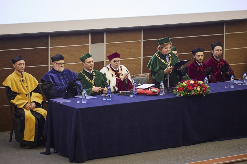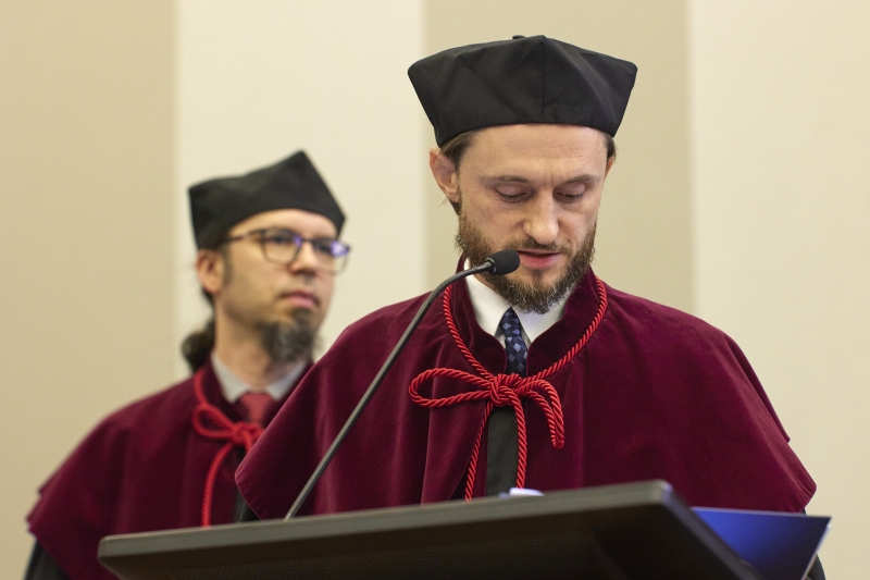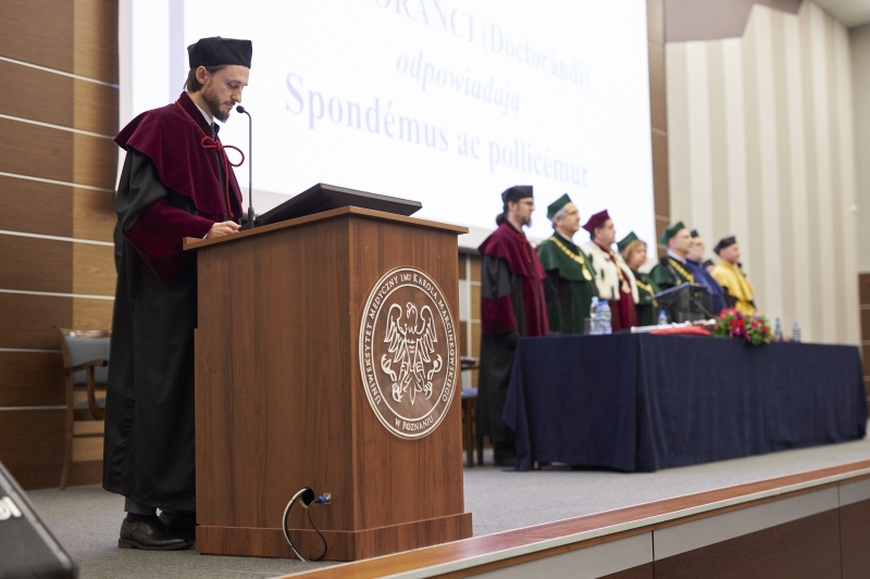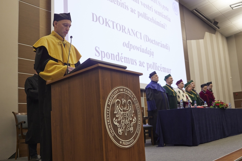Podczas ceremonii, Doktorzy zgodnie z tradycją akademicką, złożyli uroczyste ślubowanie po łacinie, zobowiązując się do dalszego, wytrwałego rozwijania nauki