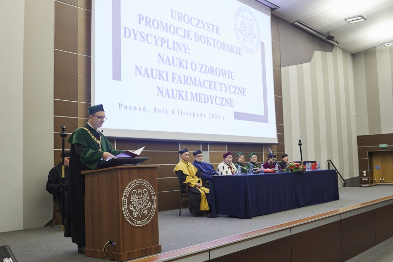 Uroczystego aktu promocji Doktorów w dyscyplinach: nauki medyczne, nauki farmaceutyczne i nauki o zdrowiu dokonali: JM Rektor prof. dr hab. Andrzej Tykarski (w dniu 7 listopada) oraz reprezentujący JM Rektora prof. dr hab. Michał Nowicki Prorektor ds. Nauki i Współpracy z Zagranicą (w dniu 6 listopada) wraz z Kanclerzami: prof. dr hab. Judytą Cielecką-Piontek - Kanclerzem Kolegium Nauk Farmaceutycznych, prof. dr. hab. Markiem Ruchałą - Kanclerzem Kolegium Nauk Medycznych i prof. dr. hab. Jarosławem Walkowiakiem - Kanclerzem Kolegium Nauk o Zdrowiu.