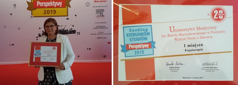 Jednocześnie w rankingu Kierunków Studiów kierunek fizjoterapia realizowany na Wydziale Nauk o Zdrowiu po raz drugi z rzędu uplasował się na pierwszym miejscu, uzyskując maksymalną ocenę 100 punktów. Nagrodę w trakcie uroczystego finału XX Rankingu Szkół Wyższych Perspektywy 2019, który odbył się 12 czerwca o godz. 12.00 w Centralnej Bibliotece Rolniczej w Warszawie, odebrała Dziekan Wydziału prof. dr hab. Małgorzata Kotwicka.