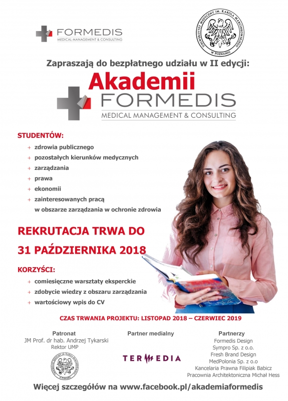 Formedis Medical Managment & Consulting we współpracy z Uniwersytetem Medycznym im. Karola Marcinkowskiego w Poznaniu zapraszają do udziału w II edycji Akademii Formedis.
