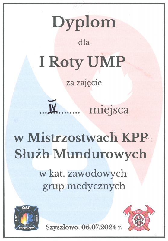 W dniu 6 lipca 2024 r., w Szyszłowie, gmina Ostrowite, odbyły się III Mistrzostwa Kwalifikowanej Pierwszej Pomocy Służb Mundurowych. Wzięło w nich udział 13 drużyn z różnych części kraju, w tym JRG, OSP, Służby Celno-Skarbowej. Uniwersytet Medyczny im. Karola Marcinkowskiego w Poznaniu reprezentował sześcioosobowy zespół złożony ze studentów I roku Ratownictwa Medycznego w składzie: Antoni Panieński, Magdalena Olszak, Maksymilian Filus, Maja Mirecka, Bartłomiej Spirka i Jakub Lewandowski w roli dowódcy.