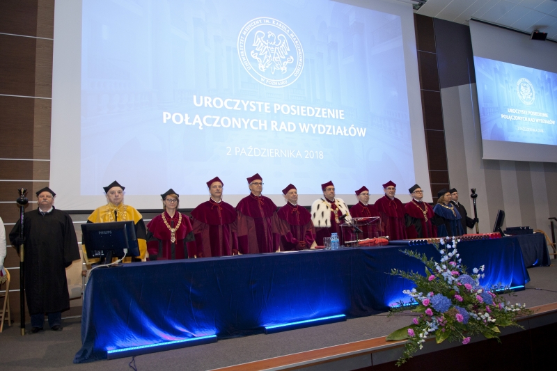 Dzień po wspólnej inauguracji roku akademickiego 2018/2019 czterech Uczelni wywodzących się z Uniwersytetu Poznańskiego, w dniu 2 października w murach Centrum Kongresowo-Dydaktycznego UMP odbyło się uroczyste posiedzenie połączonych Rad Wydziałów.
