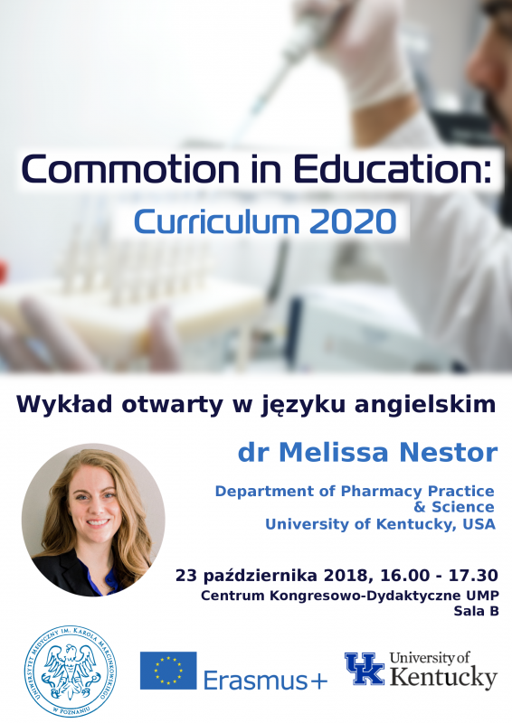 Doktor Melissa Nestor jest farmaceutą klinicznym z wieloletnim doświadczeniem zawodowym. Jednocześnie prowadzi zajęcia z farmakoterapii na University of Kentucky. W swoim wykładzie Pani Doktor opowie o zmianach w programie nauczania oraz o nowoczesnych metodach kształcenia farmaceutów na University of Kentucky.