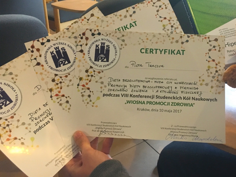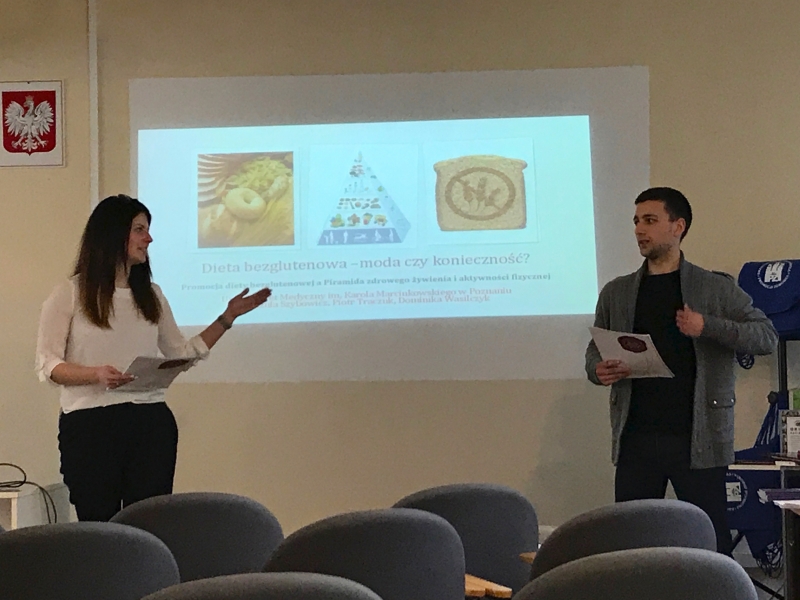 Studenci Wydziału Nauk o Zdrowiu Uniwersytetu Medycznego im. Karola Marcinkowskiego w Poznaniu, członkowie SKN UMP Manage Your Health: Urszula Szybowicz, Piotr Traczuk i Dominika Wasilczyk reprezentowali naszą Uczelnię w tym wydarzeniu. Pod opieką dr n. o zdr. Ewy Jakubek przygotowali pracę badawczą "Dieta bezglutenowa - moda czy konieczność? Promocja diety bezglutenowej a Piramida Zdrowego Żywienia i Aktywności Fizycznej".