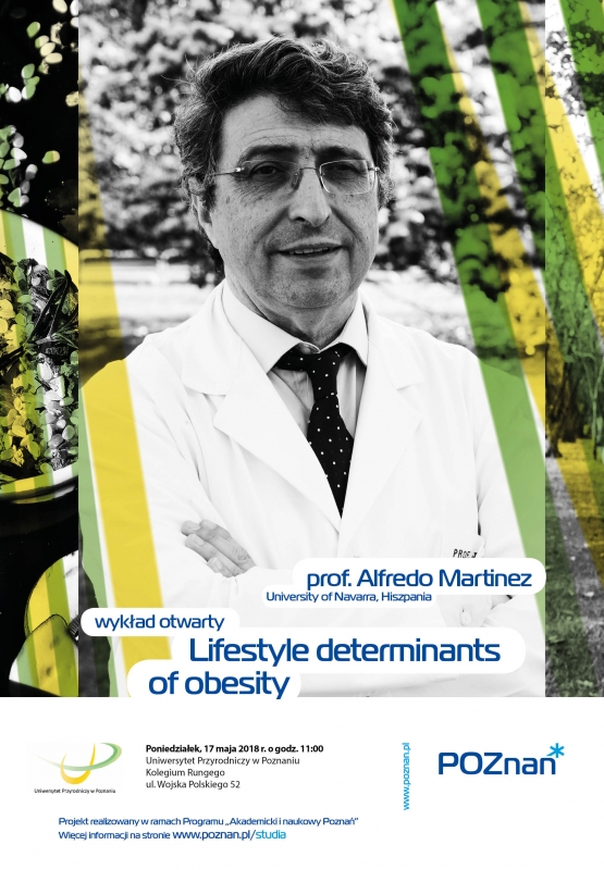 Instytut Żywienia Człowieka i Dietetyki (Uniwersytet Przyrodniczy w Poznaniu) zaprasza na wykład otwarty profesora Alfredo Martineza (Uniwersytet Nawarry, Hiszpania) pt. "Lifestyle determinants of obesity". Wykład odbędzie się dnia 17 maja 2018 o godz. 11.00 w Collegium Rungego, na ul. Wojska Polskiego 52.