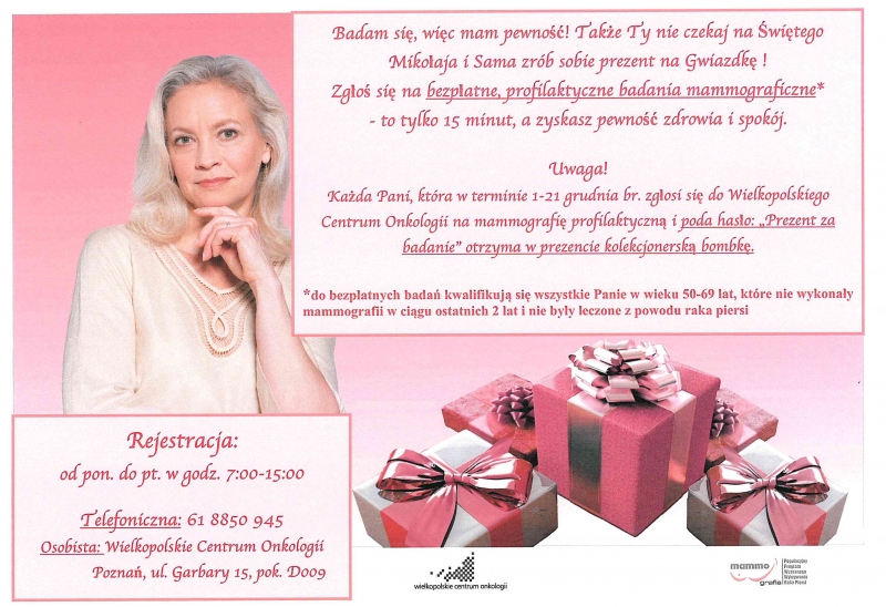 Zapraszamy na bezpłatne, profilaktyczne badania mamograficzne