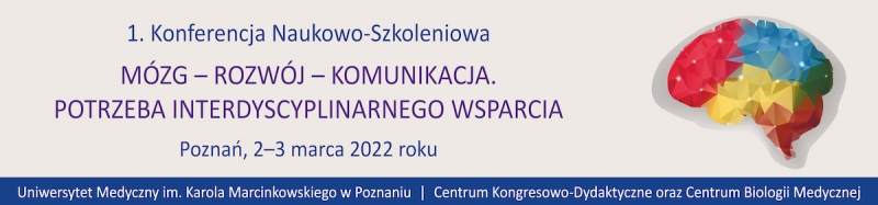 serdecznie zapraszamy na 1. Konferencję Naukowo-Szkoleniową „Mózg - rozwój - komunikacja. Potrzeba interdyscyplinarnego wsparcia”, która odbędzie się 2 i 3 marca 2022 roku w Centrum Kongresowo-Dydaktycznym Uniwersytetu Medycznego im. Karola Marcinkowskiego w Poznaniu.
