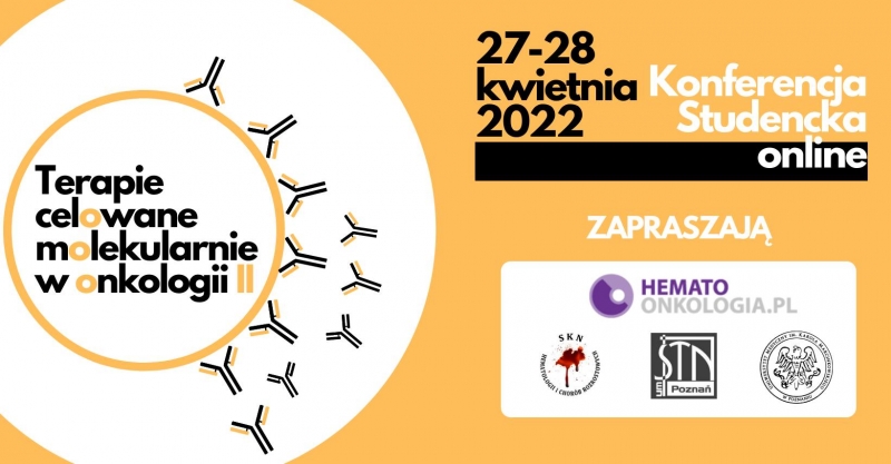 SKN Hematologii i Transplantacji Szpiku UMP serdecznie zaprasza wszystkich na II Edycję Konferencji Studenckiej „Terapie Celowane Molekularnie w Onkologii”. Wydarzenie stanowi kompendium wiedzy na temat aktualnie dostępnych terapii celowanych molekularnie w hematoonkologii oraz onkologii klinicznej. W tym roku uczestnicy będą mieli okazje usłyszeć wykłady na temat terapii celowanych molekularnie w nowotworach limfoproliferacyjnych, mieloproliferacyjnych, hematoonkologii dziecięcej, rakach jajnika, tarczycy oraz piersi. Drugiego dnia odbędzie się nowa sesja „Od charakterystyki molekularnej komórek nowotworowych do terapii celowanej”, w której omówione zostaną zagadnienia wykorzystania nowoczesnych metod diagnostycznych w projektowaniu nowych terapii.
