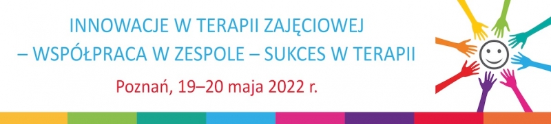 w imieniu Komitetu Naukowego i Organizacyjnego zapraszamy do udziału w kolejnej edycji Konferencji Edukacyjno-Szkoleniowej INNOWACJE W TERAPII ZAJĘCIOWEJ, która odbędzie się w Poznaniu w dniach 19-20.05.2022 r. i której tematem przewodnim będzie WSPÓŁPRACA W ZESPOLE - SUKCES W TERAPII.