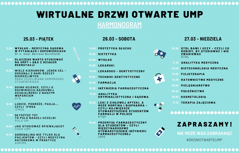 W dniach 25-27 marca 2022 r. odbędą się Wirtualne Drzwi Otwarte Uniwersytetu Medycznego w Poznaniu.