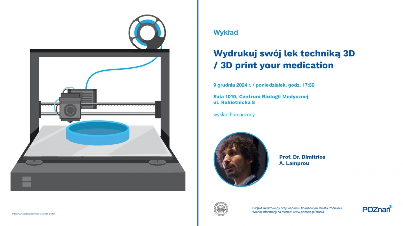 Prelekcję wygłosi prof. Dimitrios Lamprou z Queen's University Belfast, jeden ze światowych liderów w dziedzinie druku 3D oraz technologii mikroprzepływowych.