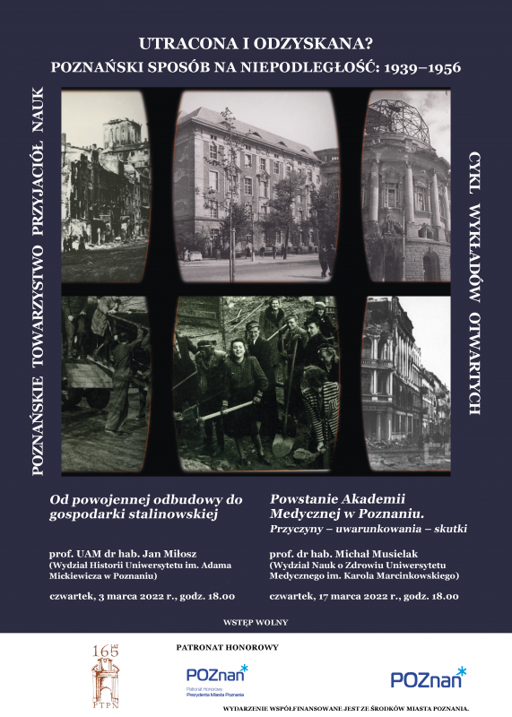 Cykl wykładów pt. Utracona i odzyskana? Poznański sposób na niepodległość: 1939-1956 jest współfinansowany ze środków Miasta Poznania. Patronatów honorowych udzielił Jacek Jaśkowiak, Prezydent Miasta Poznania.