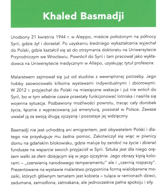 Data wydarzenia: 15 września 2017W ramach Jubileuszowej Konferencji Naukowo-Szkoleniowej "Medycyna podróży - zagadnienia wielodyscyplinarne. Choroby tropikalne i pasożytnicze a zdrowie międzynarodowe" zapraszamy na wystawę obrazów prof. Khaleda Basmadji.